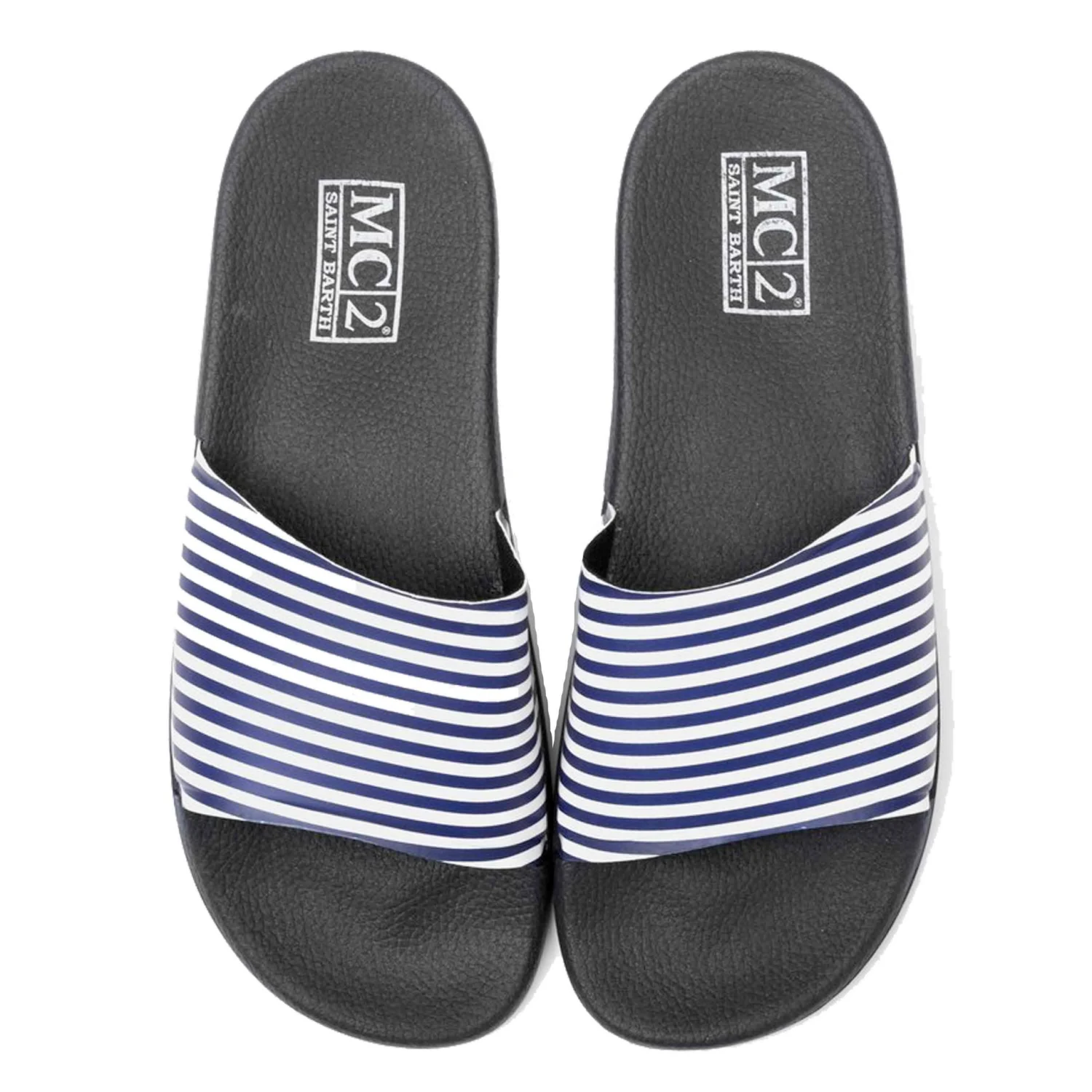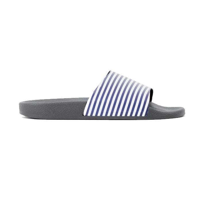 Darren is a comfortable sandal/slide with classic style. They have a contoured footbed, fabric upper, and a traction pattern on the outsole. Available in an array of fancy. This model has a White and Blue striped band. Cod: DARREN LIG61
