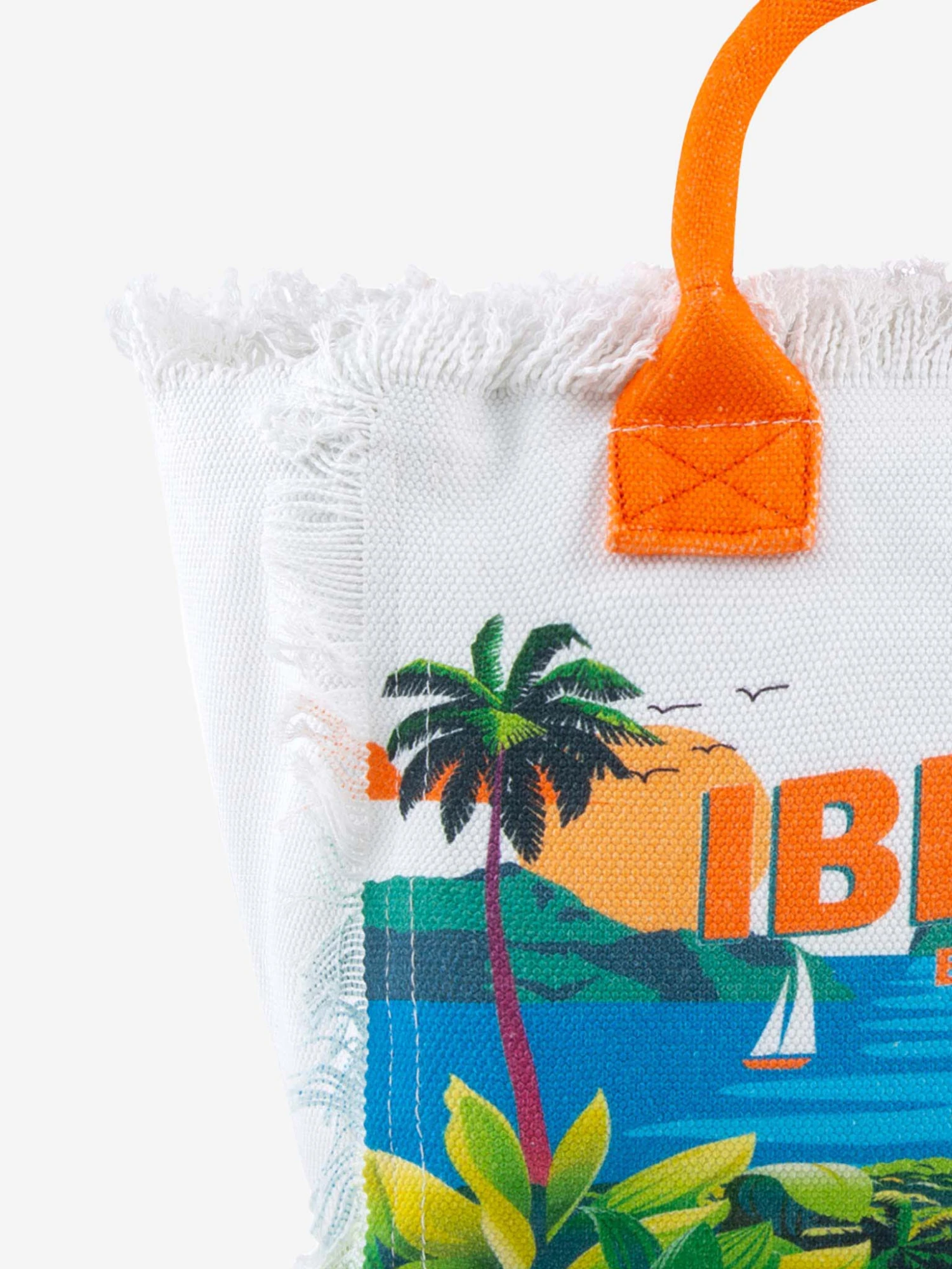 Ibiza postcard print canvas fringed handbag