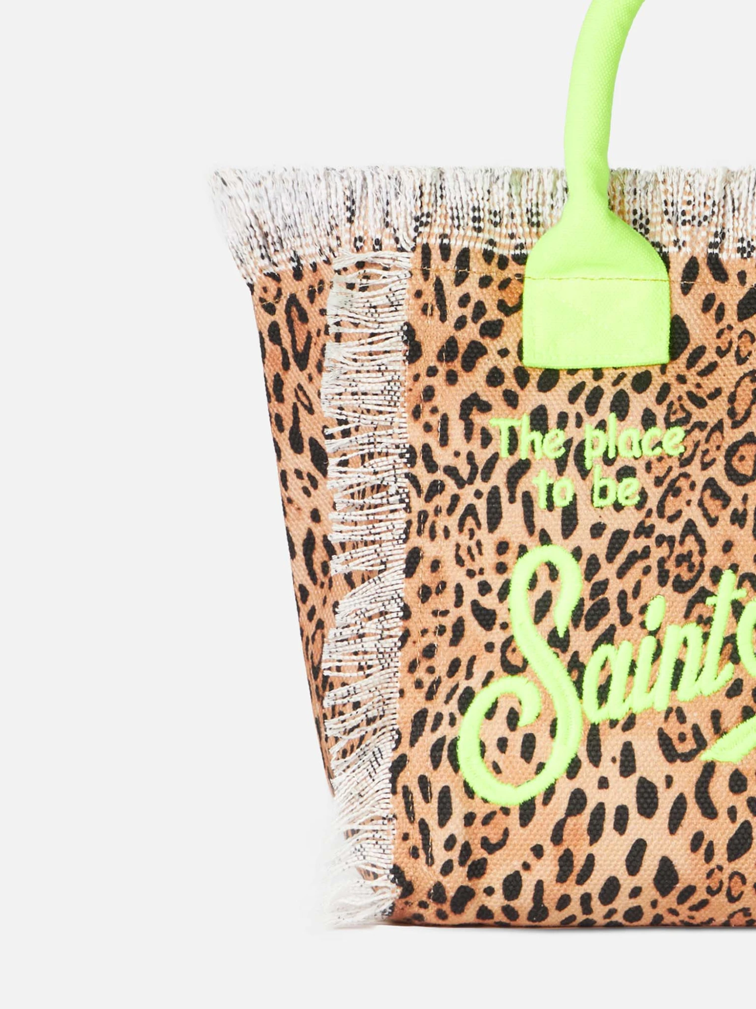 Canvas fringed handbag with animalier all over print
