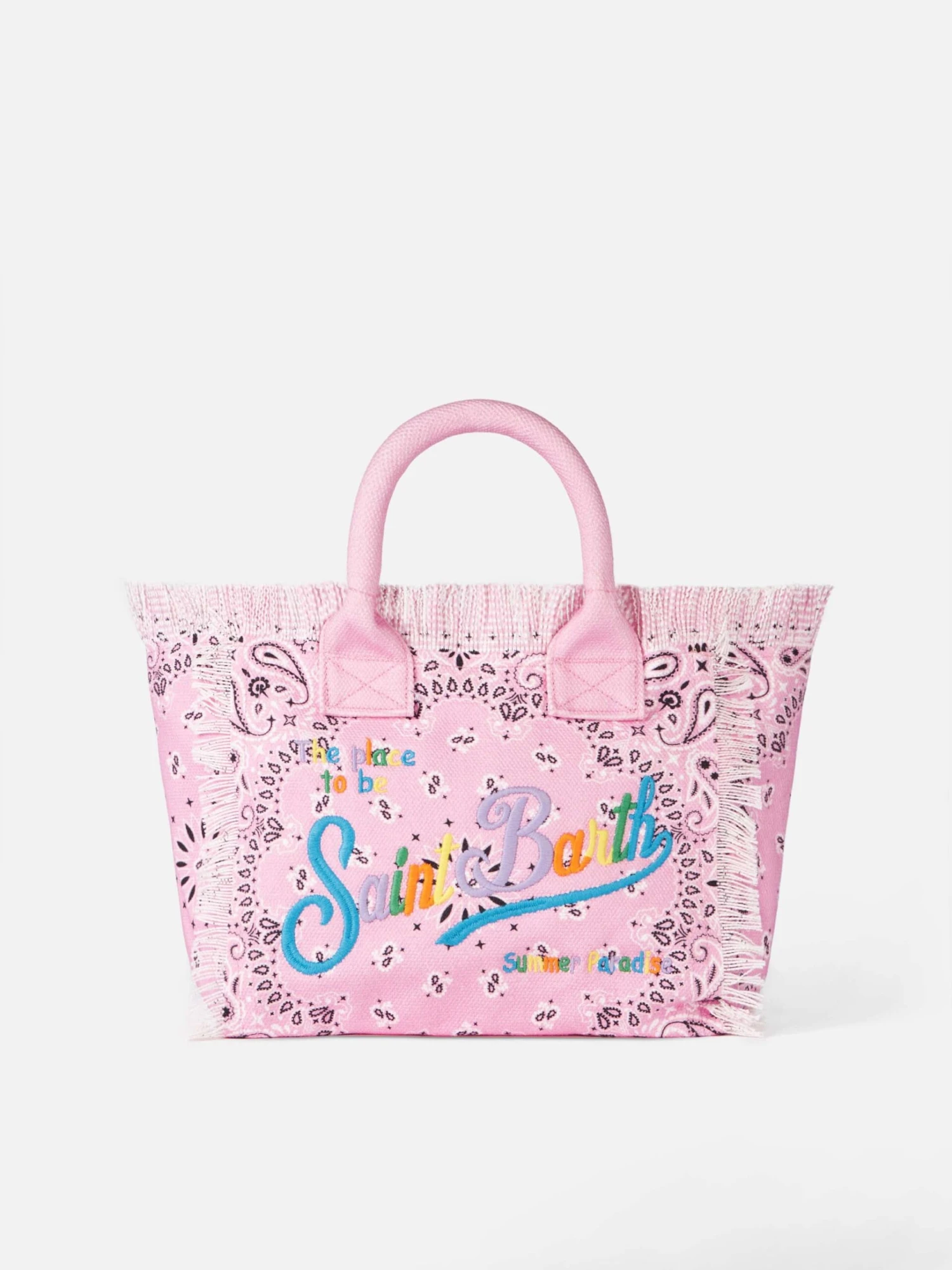 MC2 Saint Barth Colette Pink Cotton Canvas Handbag With Bandanna Print