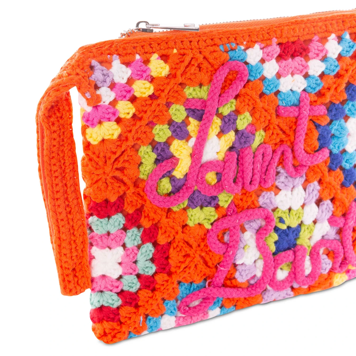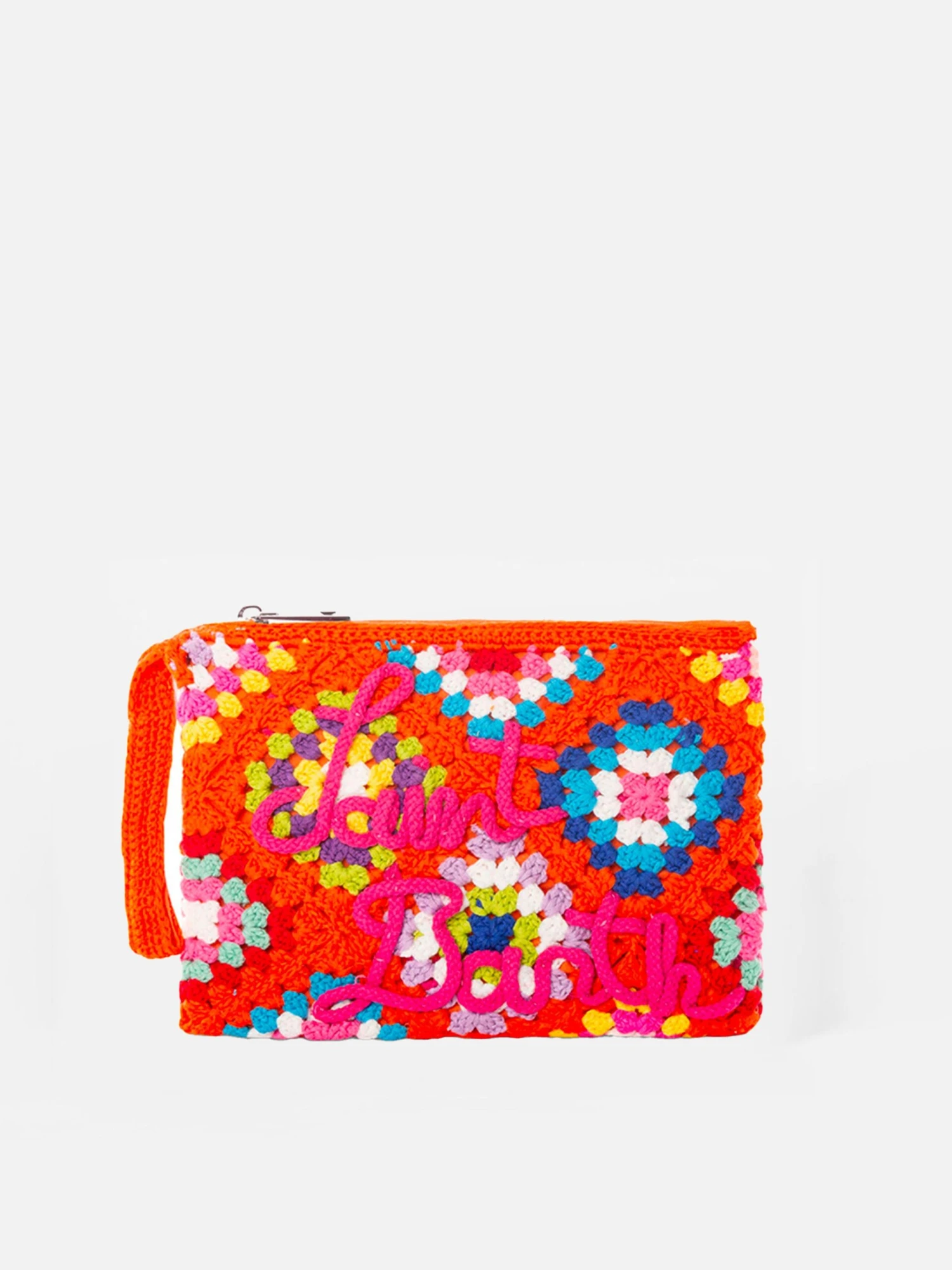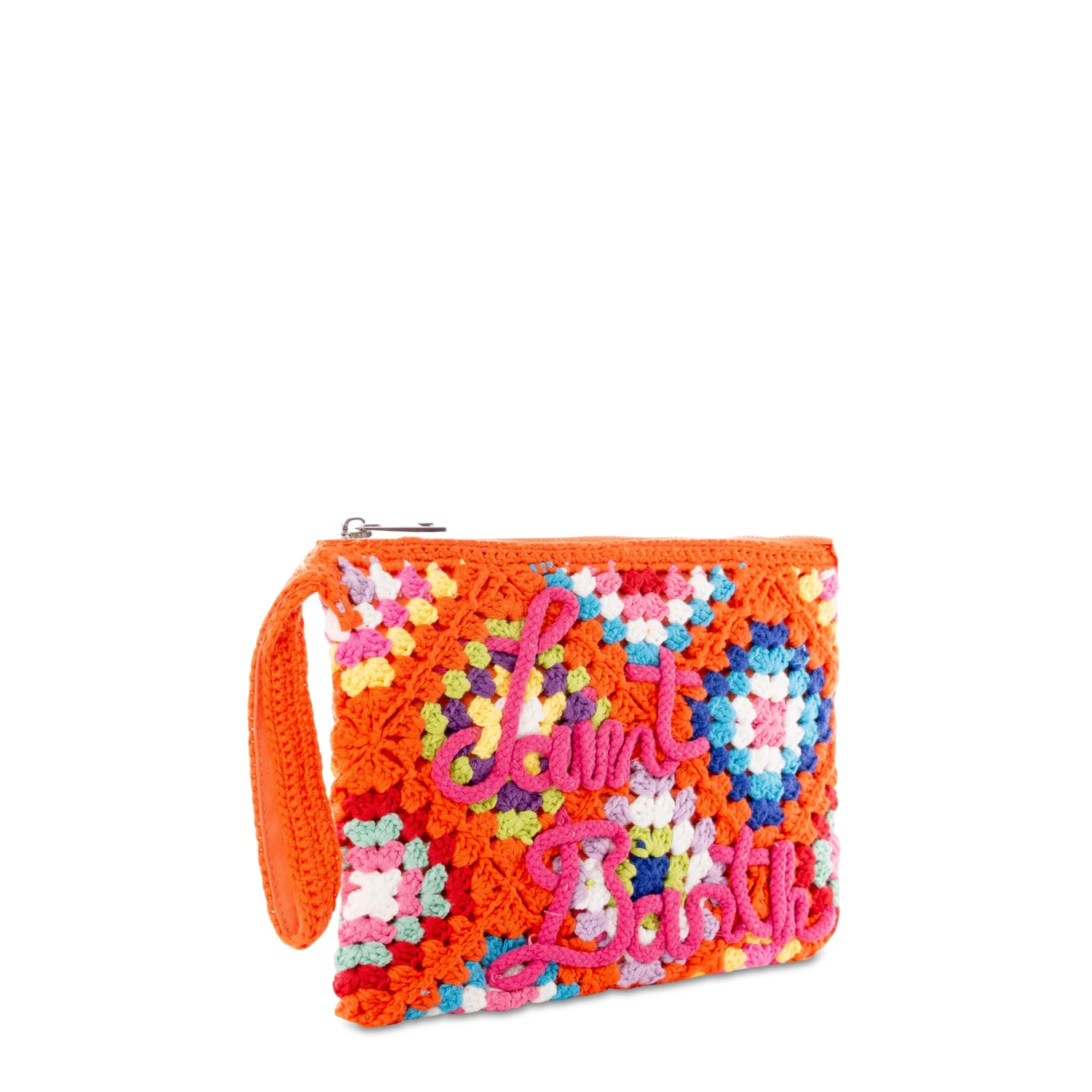 MC2 Saint Barth Parisienne Orange Crochet Pochette With Saint Barth Embroidery