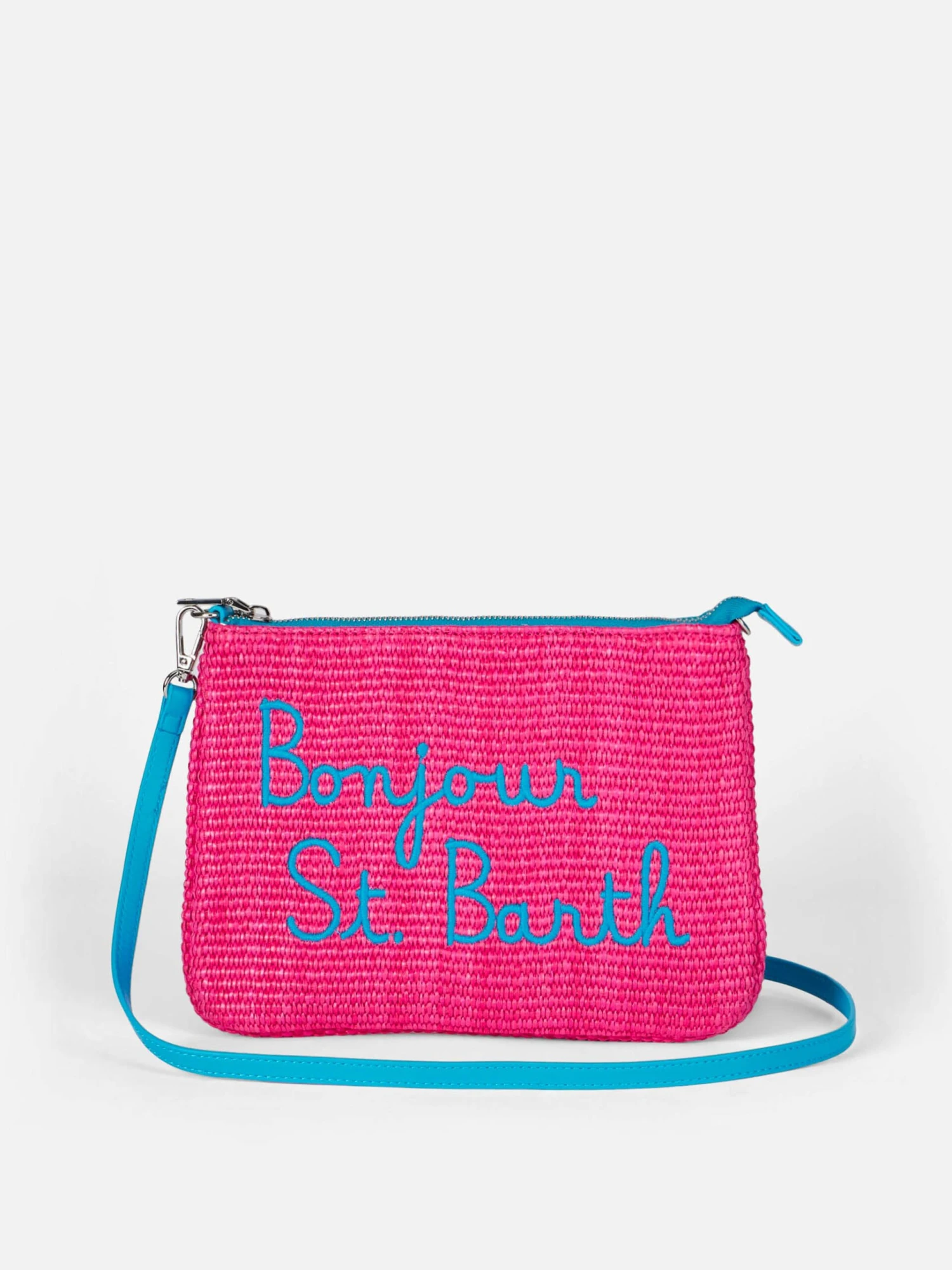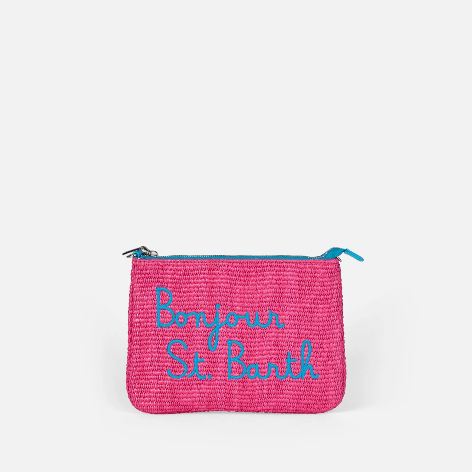 MC2 Saint Barth Parisienne Straw Fuchsia Pochette With Embroidery