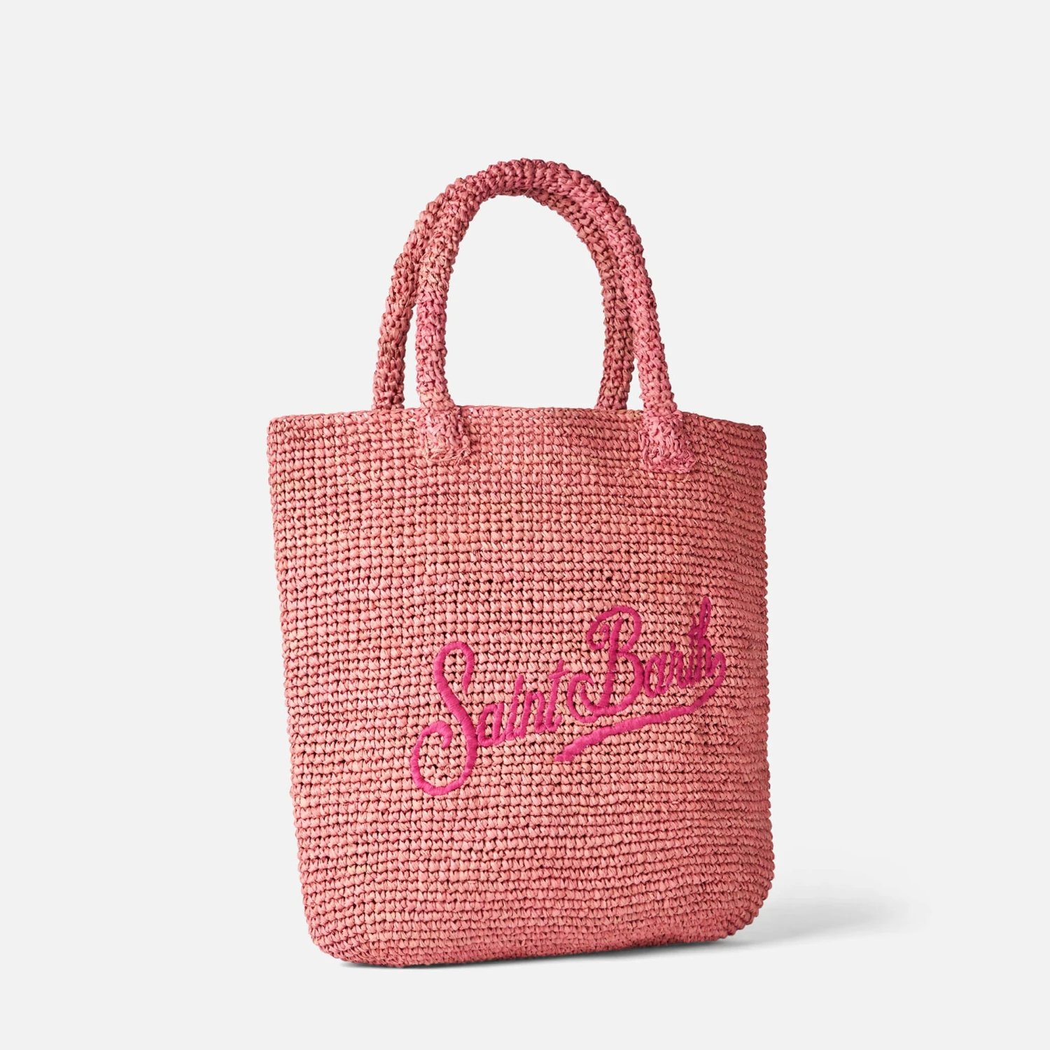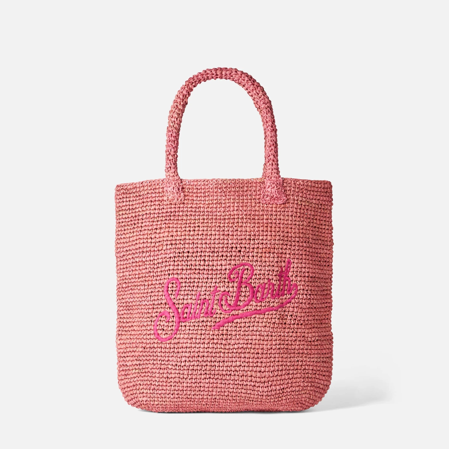 MC2 Saint Barth Raffia Bucket Pink Bag With Embroidery