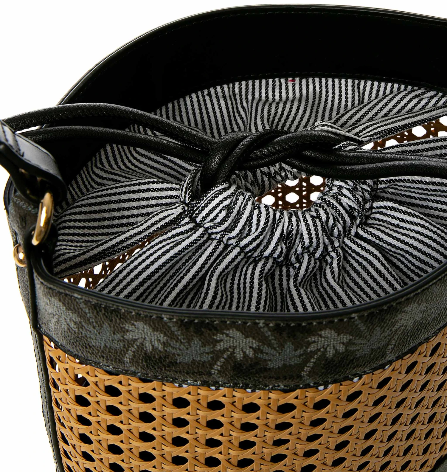 MC2 Saint Barth Straw Bucket Bag With Black Monogram Details