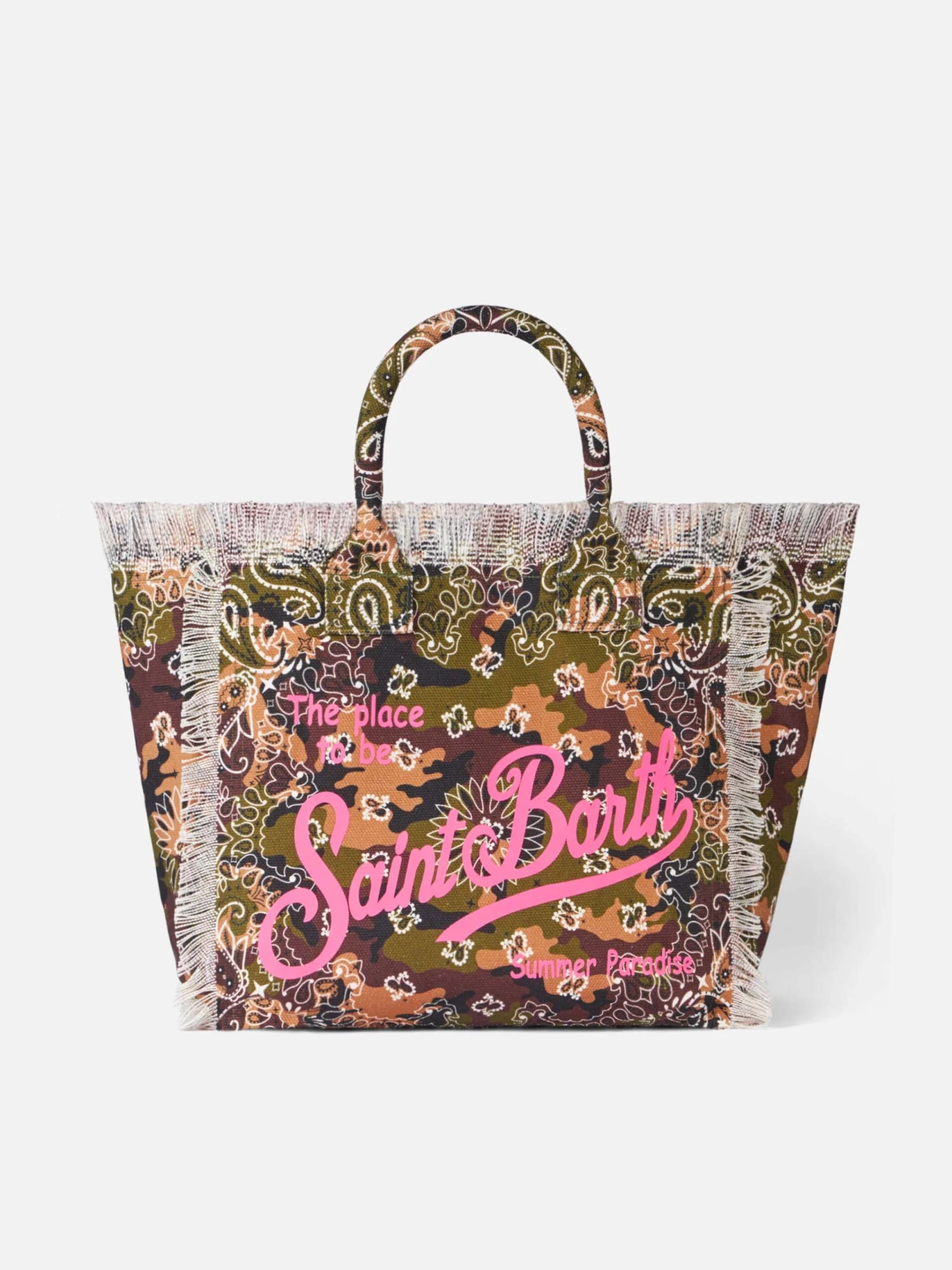 MC2 Saint Barth Vanity Canvas Shoulder Bag With Bandanna Camouflage Print